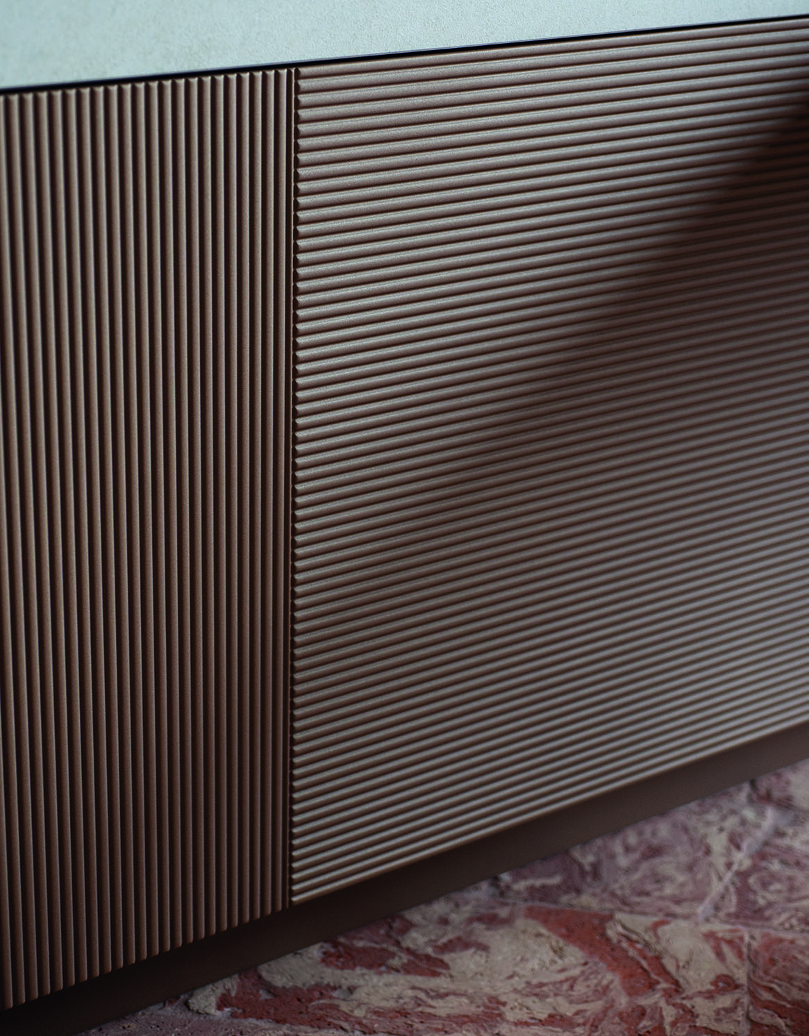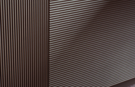 De onregelmatige contour, de afwisseling tussen volle en lege ruimtes en het spel van licht en schaduw verbergen de openingen van de deuren en dragen zo bij aan het uiteindelijke camouflageeffect.